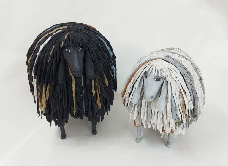 כבשים מעיסת נייר ופסי נייר, גובה 40 ס"מ | אסנת הוכנברג