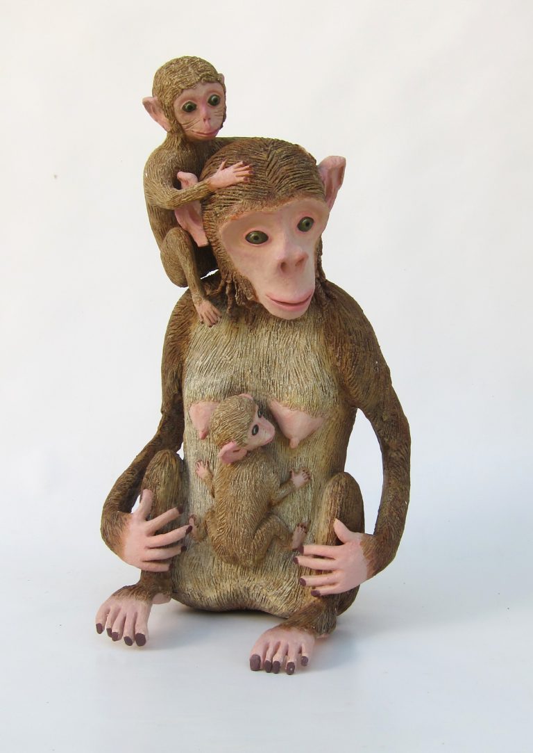 אמא קופה עם גורים מעיסת נייר, גובה 50 ס"מ | צופית אשר ז"ל