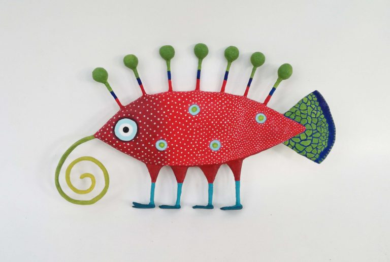 דג עם רגליים מעיסת נייר, גובה 20 ס"מ | רחל צ'סלה