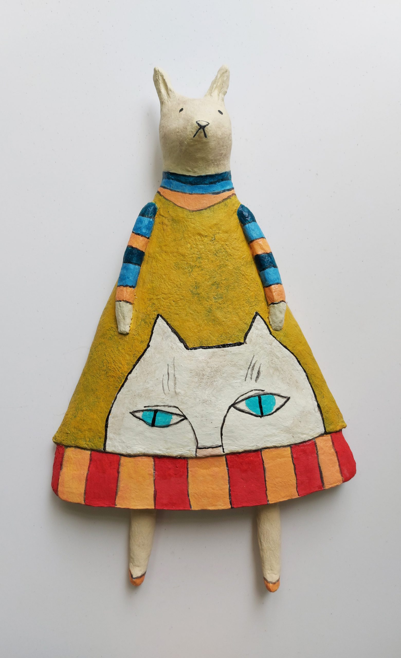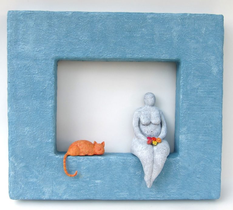 אישה עם חתול מעיסת נייר, רוחב המסגרת 45 ס"מ