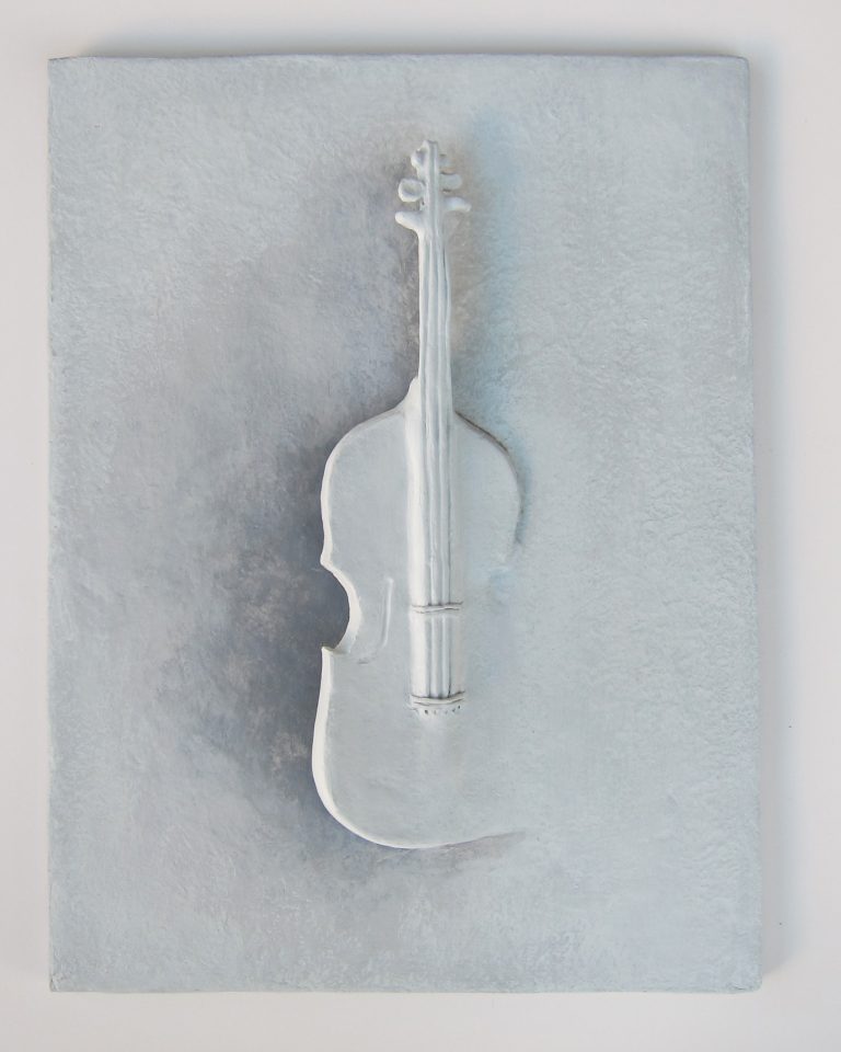 כינור, תבליט מעיסת נייר, גובה 40 ס"מ | לינט אוזמן